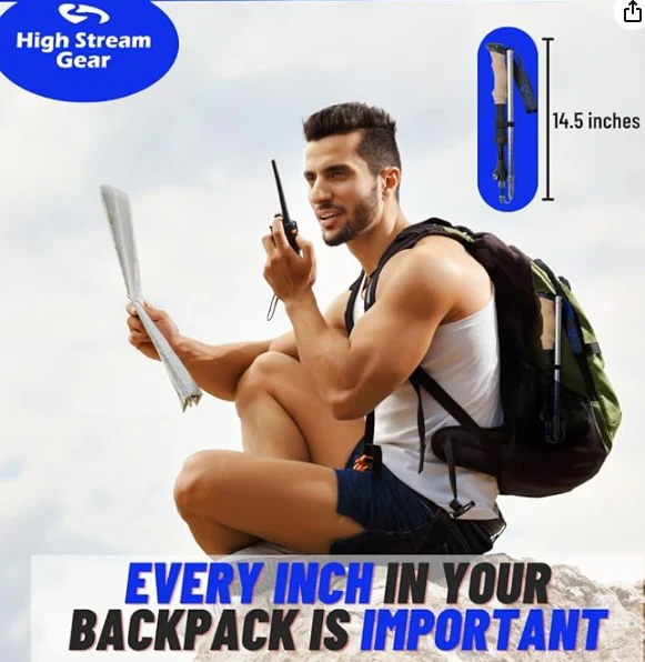 Hikers အတွက် Hiking Pares သည် 37 စင်တီမီတာ (14.5 လက်မ) အထိပြိုကျပြီး 10 အောင်စများကိုသာအလေးချိန်ရှိသည်။
