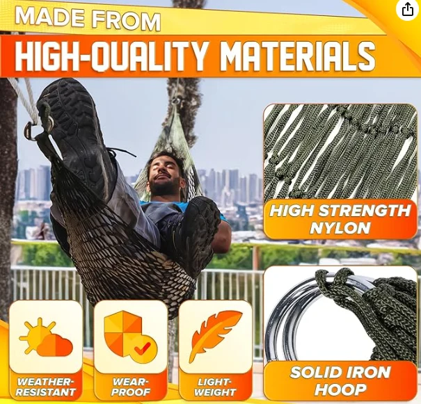 Hanging Hammock ကို Hanging ကြိုးပုခက်, ဤနိုင်လွန်ကြိုးကြိုးကြိုးကြိုးသည်မြင့်မားသောဝန်စွမ်းရည်ရှိသည်။ မြင့်မားသောကြာရှည်ခံမှုနှင့် 0 တ်ဆင်ခြင်းနှင့်မျက်ရည်များကိုခံနိုင်ရည်ရှိခြင်းကြောင့်ဤနိုင်လွန်ကြိုးကြိုးကြိုးသည်မိုးလုံလေလုံနှင့်ပြင်ပအတွက်အကောင်းဆုံးဖြစ်သည်