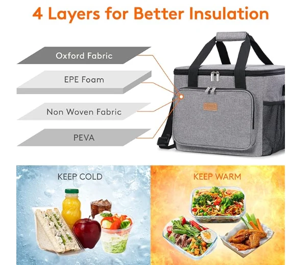 Insulated Picnic Bag, နေ့လည်စာစားသုံးခြင်းအိတ်ကိုစားသုံးခြင်းအိတ်များဖြင့်အစာနှင့်သောက်စရာများကို 5 နာရီကျော်အေးအေးဆေးဆေးသို့မဟုတ်နွေးစေနိုင်သည်။ အပြင်, အတွင်းပိုင်းနံရံသည်အစားအစာတန်း Peva သတ္တုပါးဖြင့်ပြုလုပ်ထားသဖြင့်သင်၏အစားအစာကိုမည်သည့်စိုးရိမ်စရာမရှိဘဲအိတ်ထဲသို့ပို့နိုင်သည်။ Built-in 6mm Epe Foam သည်သင်၏ကွန်တိန်နာများ, အစားအစာနှင့်သောက်စရာများကိုကြီးမားသောအကာအကွယ်ပေးသည်။