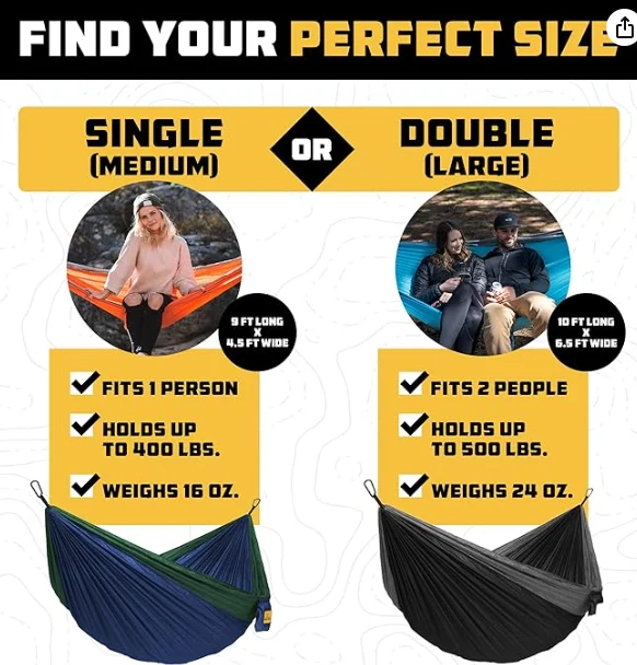 အိတ်ဆောင် 3-in-1 Camping ကြိုးပုခက်။ သင်၏ဂီယာနှင့်သင်၏လိုအပ်ချက်နှင့်အညီအရွယ်အစားနှစ်ခုကိုမြှင့်တင်ရန်အတွက်ပေါ့ပါးသောဆစ်ဂျက်ဟားဟင်ထင်မှုအမျိုးမျိုးကွဲပြားခြားနားသောအရောင်ပေါင်းစပ်မှုအမျိုးမျိုးဖြင့်လာသည်။ တစ်ခုတည်းသောဇီးကွက်သည်လူတစ် ဦး အားတစ်ကိုယ်တည်းထိုင်ပြီး 400 ပေါင်အထိကိုင်ထားနိုင်သည်။ နှစ်ဆဇီးကွက်သည်ပေါင် 500 အထိကိုင်ထားနိုင်သည်။ မဖွင့်သည့်အခါအိတ်သည်သင့်ဖုန်း, သောက်စရာသို့မဟုတ်အခြားပစ္စည်းများအတွက်အိတ်ကပ်တစ်ခုအနေဖြင့်နှစ်ဆတိုးသည်။ ကျစ်လစ်သိပ်သည်းသည့်အခါခရမ်းချဉ်သီးထက်မကြီးပါ။