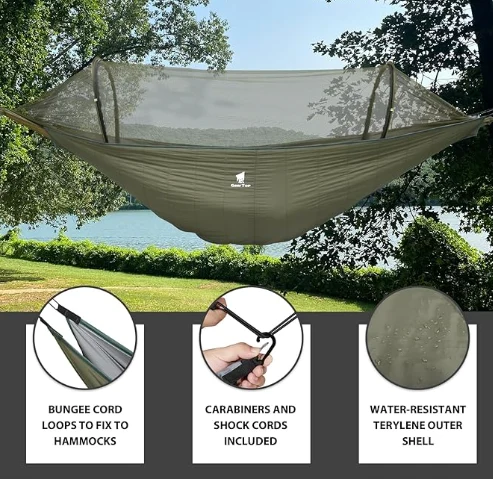 Camping အတွက်စောင်ကြိုးအောက်ရှိစခန်းချစခန်း Travel Hampock ကို Loubt 380t ရေစိုခံနိုင်လွန် Polyester Ponge Lining နှင့်အတူ 20D 380t ရေစိုခံနိုင်လွန် POMEND Shell; ပိုးထည် floss ဖြည့်ခြင်း, အရေပြား - ဖော်ရွေ, အဆင်ပြေ